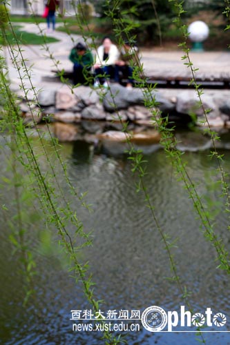 枝头的新绿 像极绿玛瑙一串 挑出三里烟柳 曲折婉蔓 你看,早莺几处、啁啾争暖