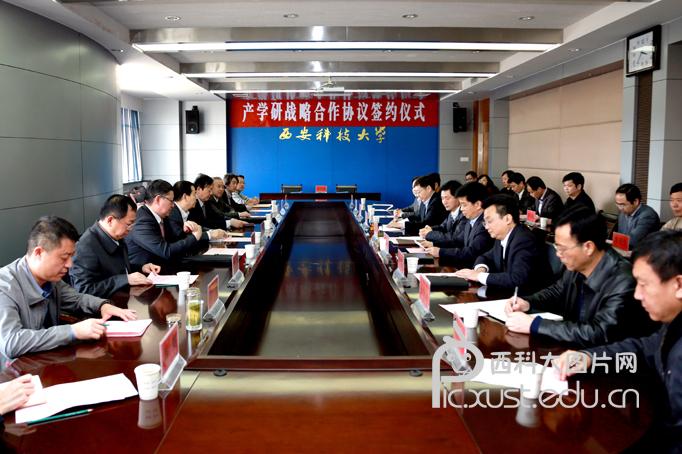随后,杨更社校长分别与陕西省地质调查院院长王双明,神华乌海能源有限责任公司董事长魏里阳,中煤科工集团西安研究院有限公司副总经理李恒堂,中煤科工集团重庆研究院有限公司副总经理黄强签署了校企战略合作协议。王双明、魏里阳、李恒堂、黄强分别讲了话,简要介绍了各自企业的情况和与我校长期以来的合作情况,并希望通过此次战略合作协议的签署,发挥校企各自优势,强强联合,深化合作关系,拓宽合作领域,积极推动务实合作。