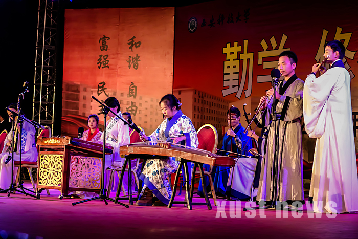 晚会以社会主义核心价值观三个层面的基本内容为主线,分为“和”、“正”、“信”三个篇章。“和”字篇以富强、民主、文明、和谐为主题,通过乐器合奏《春江花月夜》、汉服展示等具有传统韵味的表演,展示了中国传统文化的独特魅力。“正”字篇以自由、平等、公正、法治为主题,通过舞台剧《天晴了》、手语表演《爱因为在心中》、舞蹈《茉莉花》等节目讴歌了人性的善良温暖和社会的至善至美。“信”字篇以爱国、敬业、诚信、友善为主题,通过合唱《父亲》、《美丽中国》,相声《说礼》、诗朗诵《青春之歌》等节目表达了对伟大祖国的眷恋、对人伦亲情的歌颂和对青春情怀的礼赞。晚会节目精彩纷呈,气氛热烈温馨。其中,内地知名原创音乐人徐誉滕的表演点燃了现场师生的热情,为晚会增色不少。晚会结束后,与会领导登上舞台祝贺演出成功,并与演职人员合影留念。