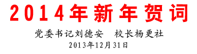 2014年的钟声即将敲响,在这辞旧迎新、充满希望的美好时刻,我们谨代表校党委、校行政向辛勤耕耘、默默奉献的全体教职工表示诚挚的感谢!向朝气蓬勃、刻苦学习的全体学生表示亲切的慰问!向所有关心和支持我校建设和发展的各级领导、社会各界人士和广大校友表示衷心的感谢和崇高的敬意!