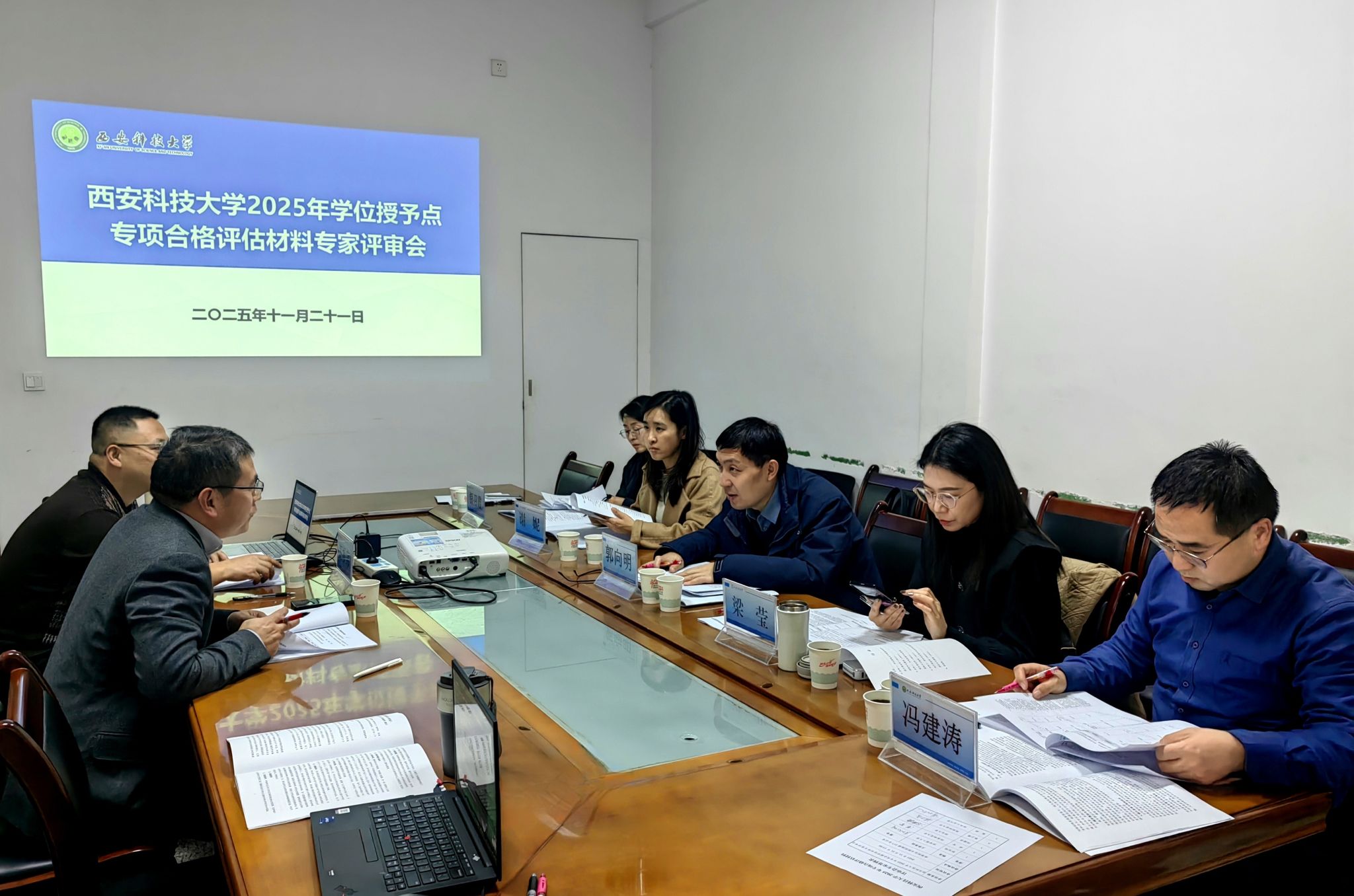 11月21日,学校在雁塔校区北院机械楼217会议室召开了2025年学位点专项合格评估材料专家评审会。本次评审邀请到西安理工大学研究生院常务副院长郭向明、陕西师范大学学科建设与发展规划处副处长梁莹、西北大学研究生院副院长冯建涛、陕西科技大学学科建设办公室副主任银召霞、西北工业大学学科建设办公室谢妮组成专家组,对我校2个参评学位点的专项合格评估材料进行了评审。各参评学位点负责人、学科带头人及材料撰写骨干教师参会,会议第一阶段由发展规划与学科建设处负责人主持,评审阶段由专家组组长主持。