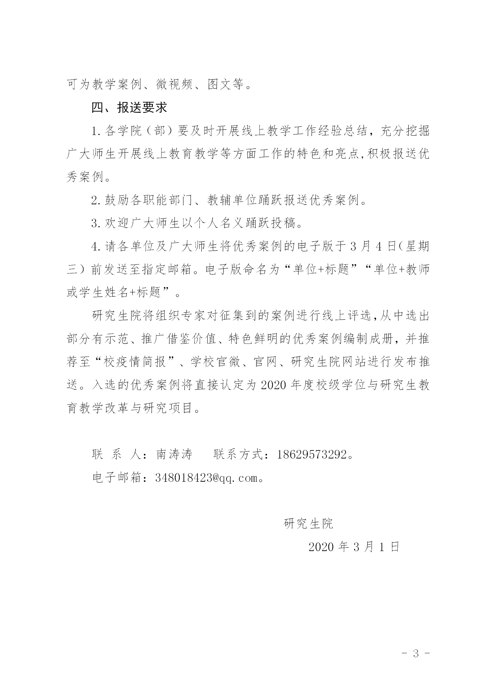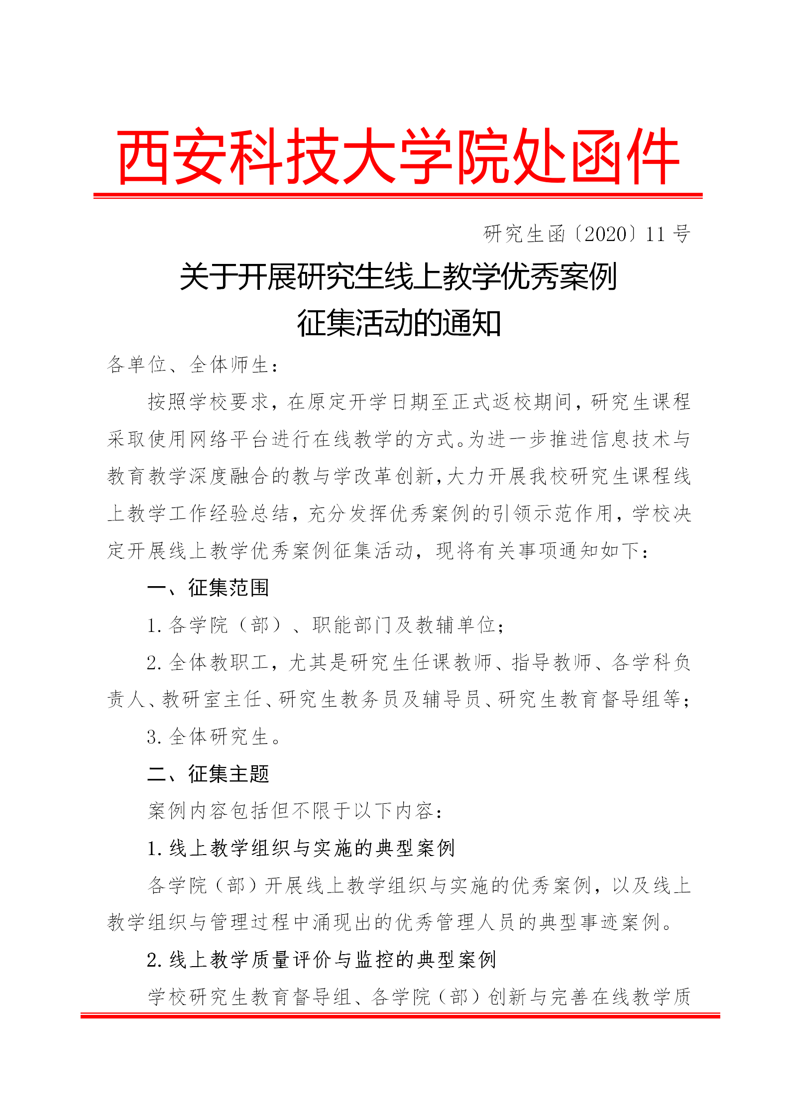 关于开展研究生线上教学优秀案例征集活动的通知