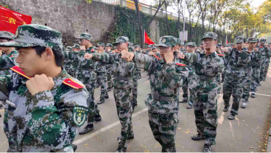 训练过程中,两大方阵的二营建工学院学子劲头十足、互不示弱。男子格斗术方阵里,学子们身姿挺拔、眼神坚定,额角的汗水顺着脸颊滑落,却丝毫没有影响动作节奏,随着教官口令整齐出拳,每一次挥拳都力道十足,格挡动作干脆利落。面对反复练习的组合动作,大家毫无懈怠,休息时擦把汗便又主动与队友对练,在模拟实战中打磨技巧。女子格斗术方阵中,学子们同样展现出坚韧的韧劲,从最初动作生疏、手臂发酸时的咬牙坚持,到逐渐找到节奏后出拳、侧闪、防守的连贯流畅,每一点进步都离不开高温下的坚守。