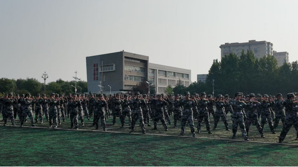 他们阵列规整,动作刚猛利落。每一次出拳如雷霆出击,每一次踢腿似劲风横扫,将军体拳的攻防要义展现得精准到位。学子们眼神专注而坚毅,在“自强不息励志图存”的校训建筑映衬下,更显蓬勃朝气与刚毅品格。这一幕,是管理学院学子在军训中磨砺意志、锤炼作风的生动写照,他们以整齐划一的动作、饱满的精神状态,诠释着青春的热血与担当,在军体拳的一招一式里,书写属于他们的成长与蜕变。