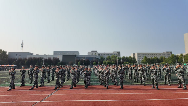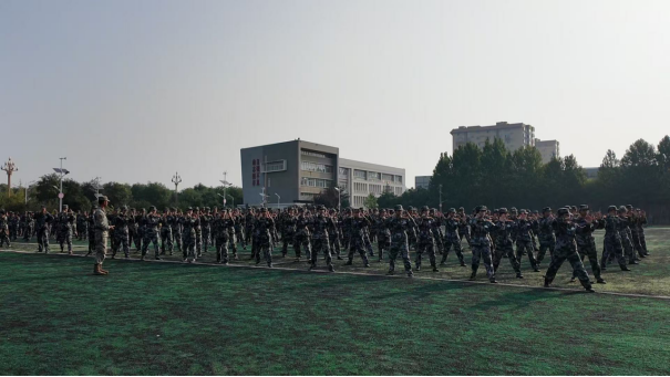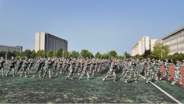 在印有“自强不息励志图存”校训的教学楼前,管理学院的军训场地上,教官正悉心教导学生们演练军体拳。教官身姿挺拔,动作标准规范,每一次出拳、每一个转身都极具示范力。学生们身着迷彩军装,紧紧跟随教官的动作,认真模仿、反复练习。他们的动作在教官的指导下逐渐变得整齐划一,出拳有力,踢腿带风,将军体拳的刚劲与教官传授的技巧融合在一起。在这片绿意盎然的操场上,教官的耐心教导与学生们的专注练习交织,构成了一幅军训场上的生动画面,展现出管理学院学子在教官引领下,锤炼意志、学习技能的成长瞬间。